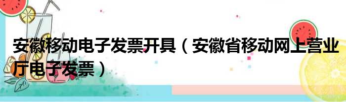 安徽移动电子发票开具(安徽省移动网上营业厅电子发票)