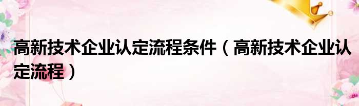 高新技术企业认定流程条件(高新技术企业认定流程)