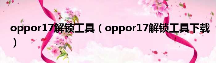导读 大家好,今天小六子来为大家解答以下的问题,关于oppor17解锁工具,oppor17解锁工具下载这个很多人还不知道,现在让我们一起来看看吧!1、工