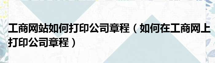 工商网站如何打印公司章程(如何在工商网上打印公司章程)