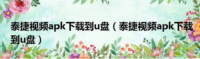 泰捷视频apk下载到u盘(泰捷视频apk下载到u盘)