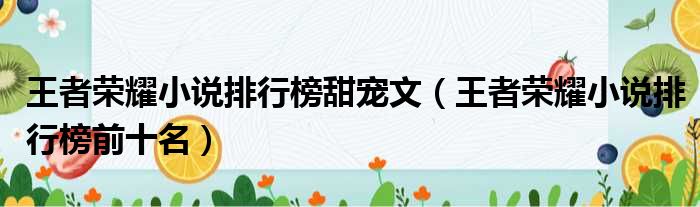 导读 大家好,今天小六子来为大家解答以下的问题,关于王者荣耀小说排行榜甜宠文,王者荣耀小说排行榜前十名这个很多人还不知道,现在让我们一起