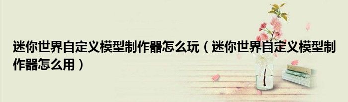 导读 大家好,今天小六子来为大家解答以下的问题,关于迷你世界自定义模型制作器怎么玩,迷你世界自定义模型制作器怎么用这个很多人还不知道,现