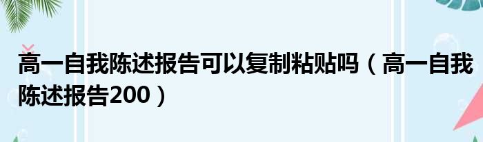 高一自我陈述报告可以复制粘贴吗(高一自我陈述报告200)