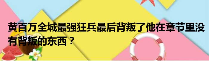 导读 大家好,今天小六子来为大家解答以下的问题,关于黄百万全城最强狂兵最后背叛了他在章节里没有背叛的东西?这个很多人还不知道,现在让我们