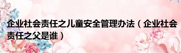 企业社会责任之儿童安全管理办法(企业社会责任之父是谁)