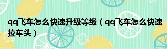 导读 大家好,今天小六子来为大家解答以下的问题,关于qq飞车怎么快速升级等级,qq飞车怎么快速拉车头这个很多人还不知道,现在让我们一起来看看