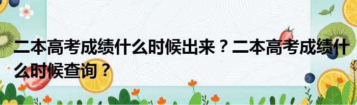 导读 大家好,今天小六子来为大家解答以下的问题,关于二本高考成绩什么时候出来?二本高考成绩什么时候查询?这个很多人还不知道,现在让我们一