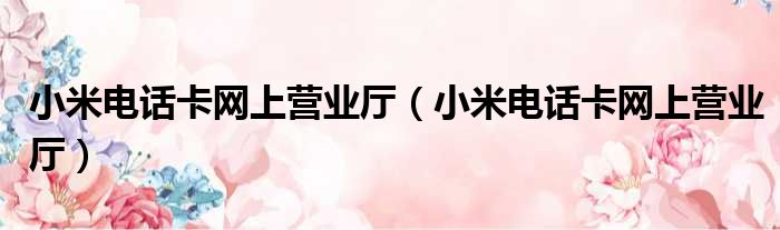 小米电话卡网上营业厅(小米电话卡网上营业厅)