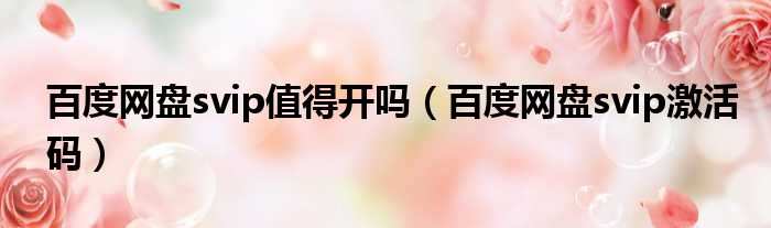 导读 大家好,今天小六子来为大家解答以下的问题,关于百度网盘svip值得开吗,百度网盘svip激活码这个很多人还不知道,现在让我们一起来看看吧!1