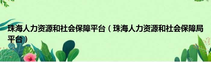 珠海人力资源和社会保障平台(珠海人力资源和社会保障局平台)