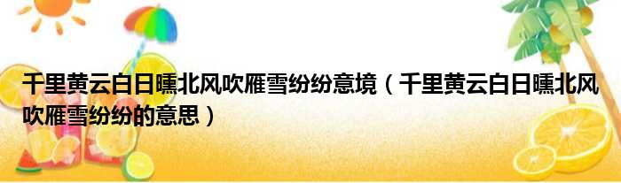 千里黄云白日曛北风吹雁雪纷纷意境(千里黄云白日曛北风吹雁雪纷纷的意思)