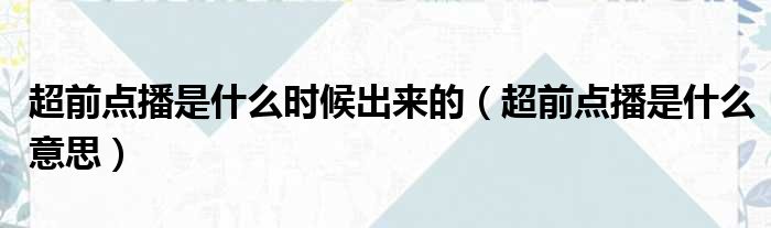 导读 大家好,今天小六子来为大家解答以下的问题,关于超前点播是什么时候出来的,超前点播是什么意思这个很多人还不知道,现在让我们一起来看看