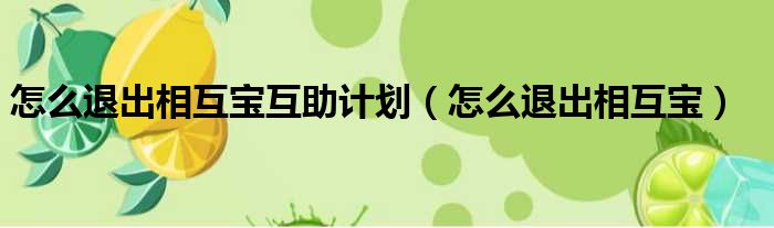 怎么退出相互宝互助计划(怎么退出相互宝)
