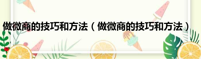 做微商的技巧和方法(做微商的技巧和方法)