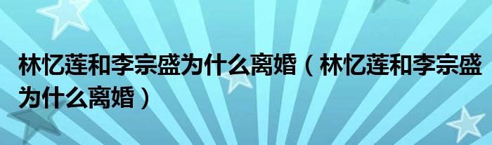 林忆莲和李宗盛为什么离婚(林忆莲和李宗盛为什么离婚)