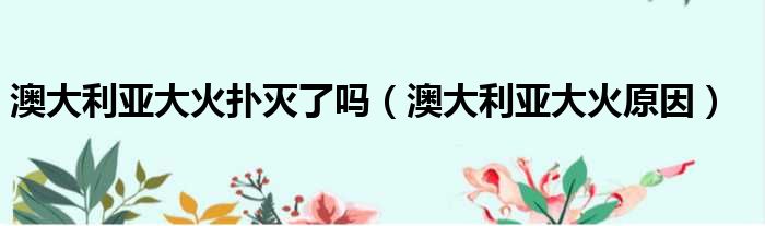 澳大利亚大火扑灭了吗(澳大利亚大火原因)