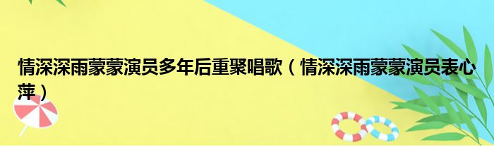 导读 大家好,今天小六子来为大家解答以下的问题,关于情深深雨蒙蒙演员多年后重聚唱歌,情深深雨蒙蒙演员表心萍这个很多人还不知道,现在让我们