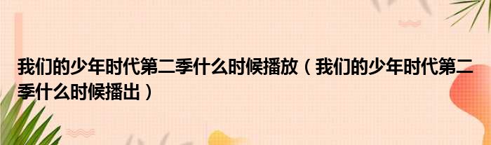 我们的少年时代第二季什么时候播放(我们的少年时代第二季什么时候播出)