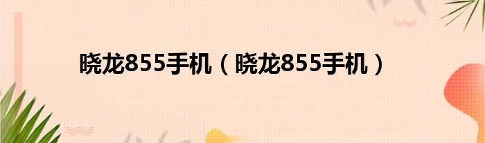 晓龙855手机(晓龙855手机)