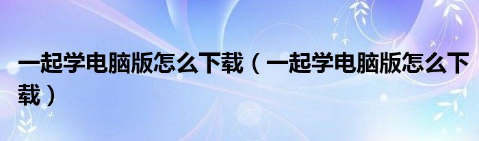 一起学电脑版怎么下载(一起学电脑版怎么下载)