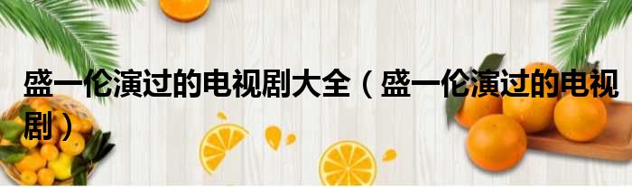 盛一伦演过的电视剧大全(盛一伦演过的电视剧)
