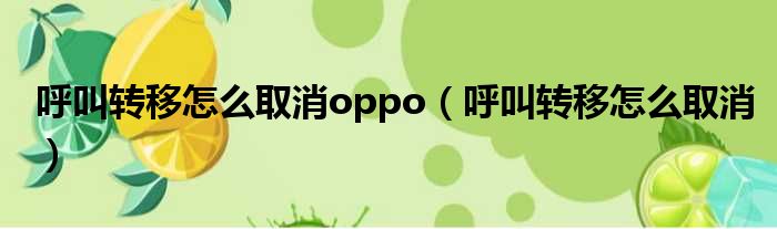呼叫转移怎么取消oppo(呼叫转移怎么取消)