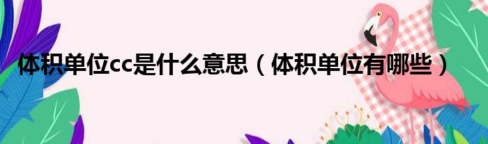 导读 大家好,今天小六子来为大家解答以下的问题,关于体积单位cc是什么意思,体积单位有哪些这个很多人还不知道,现在让我们一起来看看吧!1、常