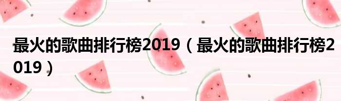 最火的歌曲排行榜2019(最火的歌曲排行榜2019)
