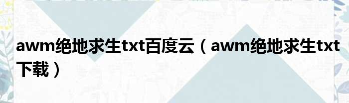 导读 大家好,今天小六子来为大家解答以下的问题,关于awm绝地求生txt百度云,awm绝地求生txt下载这个很多人还不知道,现在让我们一起来看看吧!1