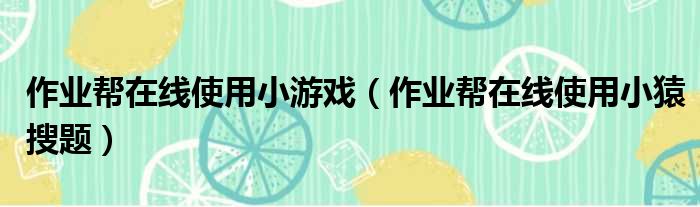 导读 大家好,今天小六子来为大家解答以下的问题,关于作业帮在线使用小游戏,作业帮在线使用小猿搜题这个很多人还不知道,现在让我们一起来看看