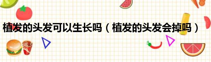 导读 大家好,今天小六子来为大家解答以下的问题,关于植发的头发可以生长吗,植发的头发会掉吗这个很多人还不知道,现在让我们一起来看看吧!1、