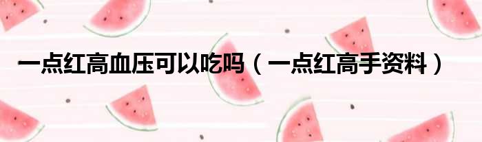 大家好,今天小六子来为大家解答以下的问题,关于一点红高血压可以吃吗,一点红高手资料这个很多人还不知道,现在让我们一起来看看吧!