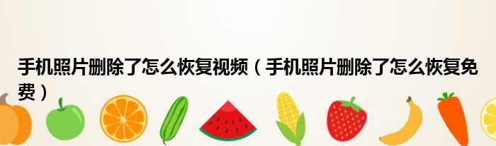 手机照片删除了怎么恢复视频(手机照片删除了怎么恢复免费)