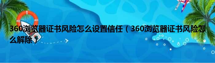 360浏览器证书风险怎么设置信任(360浏览器证书风险怎么解除)