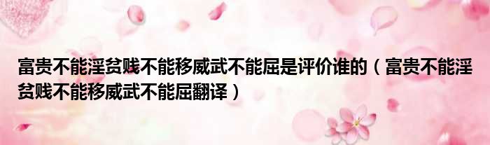 富贵不能淫贫贱不能移威武不能屈是评价谁的(富贵不能淫贫贱不能移威武不能屈翻译)