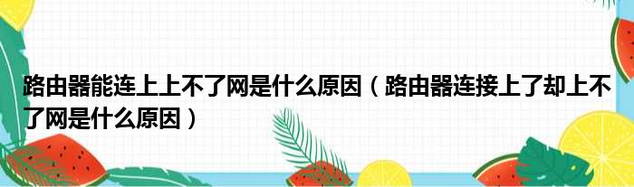 路由器能连上上不了网是什么原因(路由器连接上了却上不了网是什么原因)