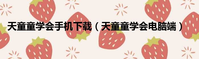 导读 大家好,今天小六子来为大家解答以下的问题,关于天童童学会手机下载,天童童学会电脑端这个很多人还不知道,现在让我们一起来看看吧!1、经