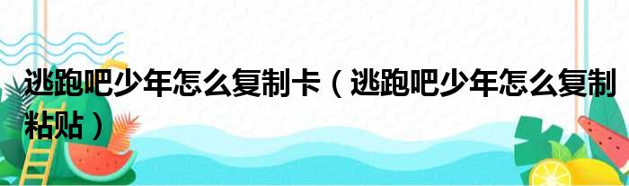 逃跑吧少年怎么复制卡(逃跑吧少年怎么复制粘贴)