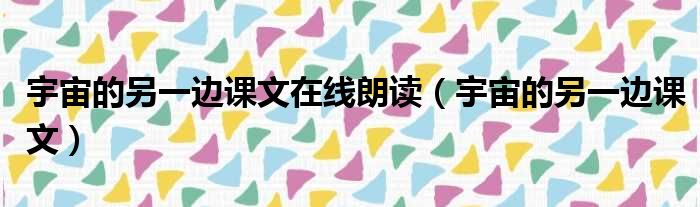 宇宙的另一边课文在线朗读(宇宙的另一边课文)