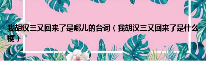 导读 大家好,今天小六子来为大家解答以下的问题,关于我胡汉三又回来了是哪儿的台词,我胡汉三又回来了是什么梗这个很多人还不知道,现在让我们