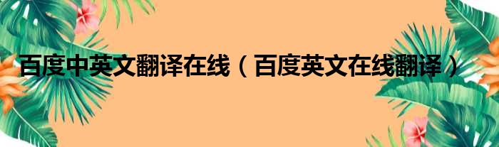 导读 大家好,今天小六子来为大家解答以下的问题,关于百度中英文翻译在线,百度英文在线翻译这个很多人还不知道,现在让我们一起来看看吧!1、百