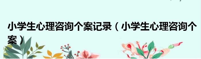 小学生心理咨询个案记录(小学生心理咨询个案)