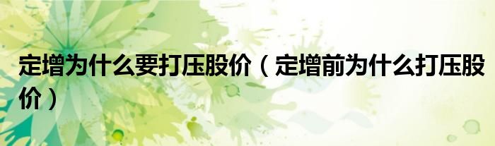 定增为什么要打压股价(定增前为什么打压股价)