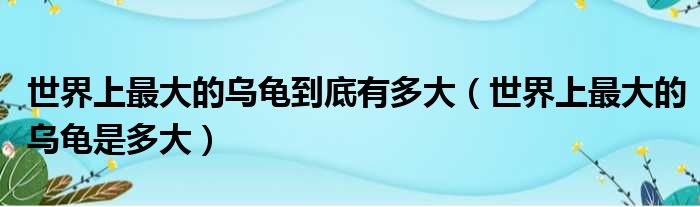 世界上最大的乌龟到底有多大(世界上最大的乌龟是多大)