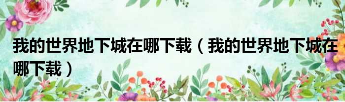 我的世界地下城在哪下载(我的世界地下城在哪下载)