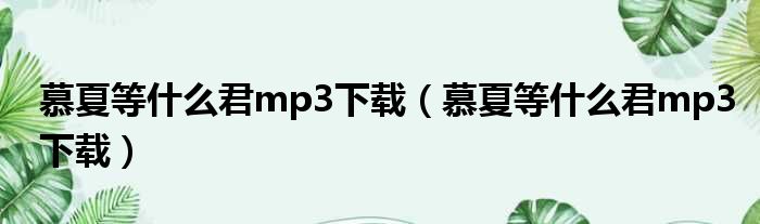 慕夏等什么君mp3下载(慕夏等什么君mp3下载)