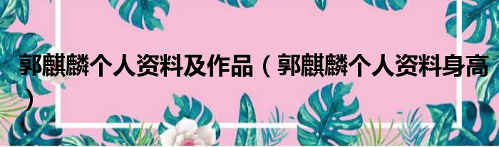 导读 大家好,今天小六子来为大家解答以下的问题,关于郭麒麟个人资料及作品,郭麒麟个人资料身高这个很多人还不知道,现在让我们一起来看看吧!1