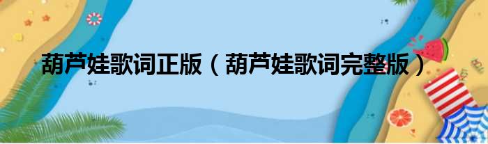 葫芦娃歌词正版(葫芦娃歌词完整版)