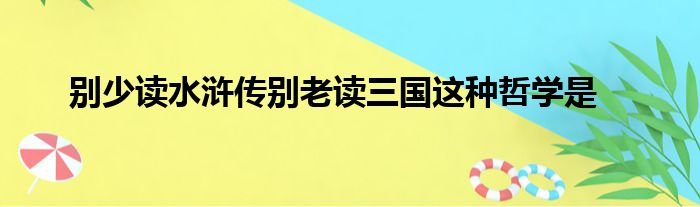 大家好,今天小六子来为大家解答以下的问题,关于别少读水浒传别老读三国这种哲学是这个很多人还不知道,现在让我们一起来看看吧!